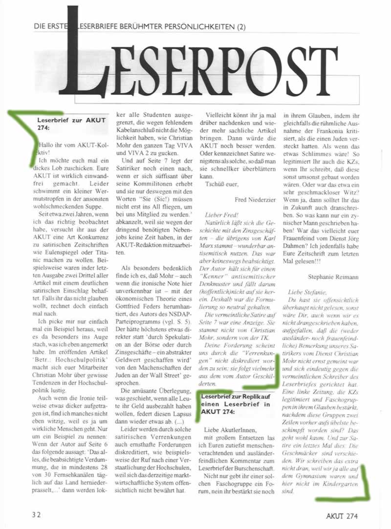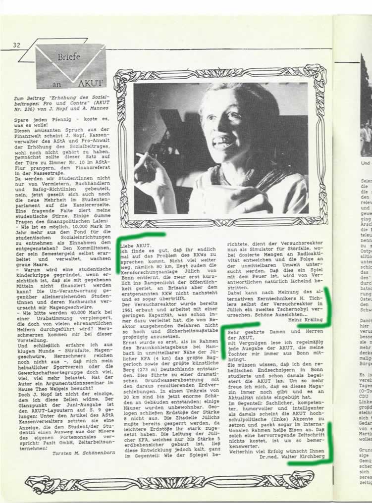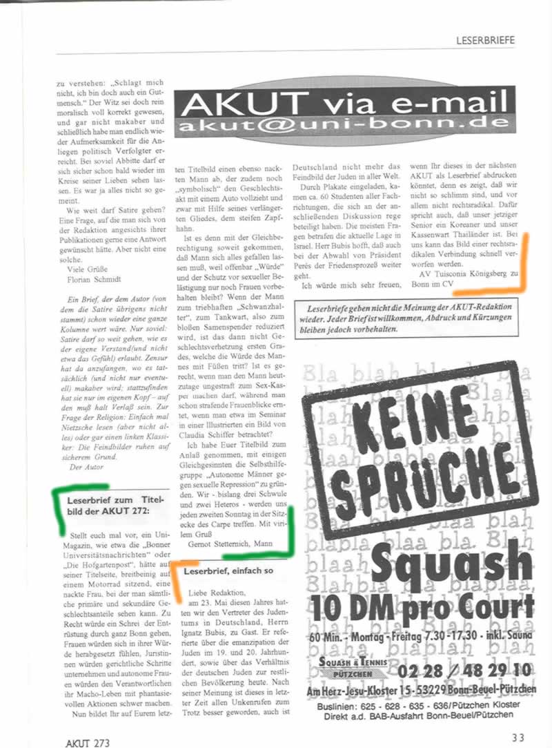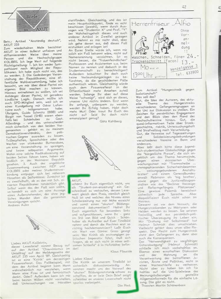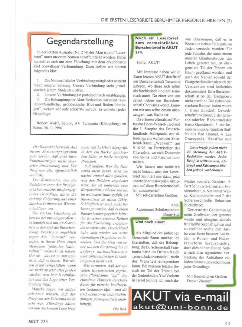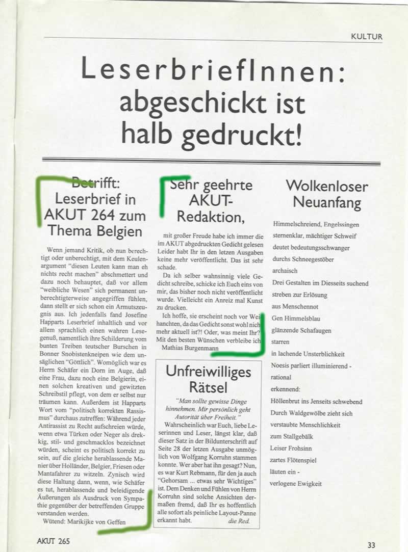 folgenden Ausgabe der Akut erscheint daraufhin eine Gegendarstellung