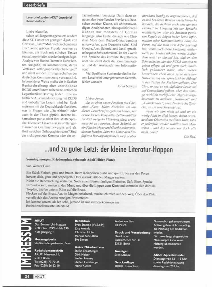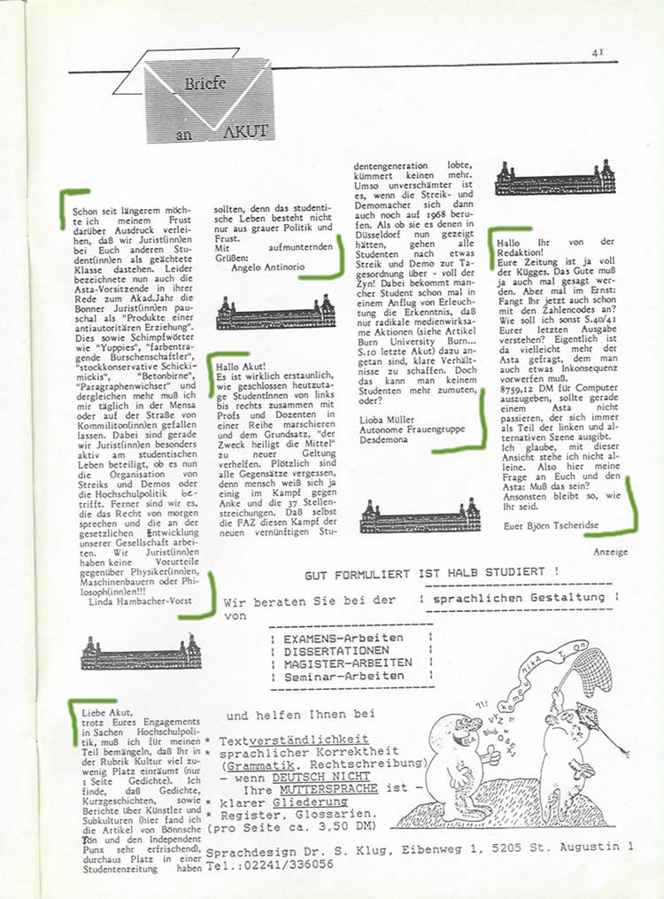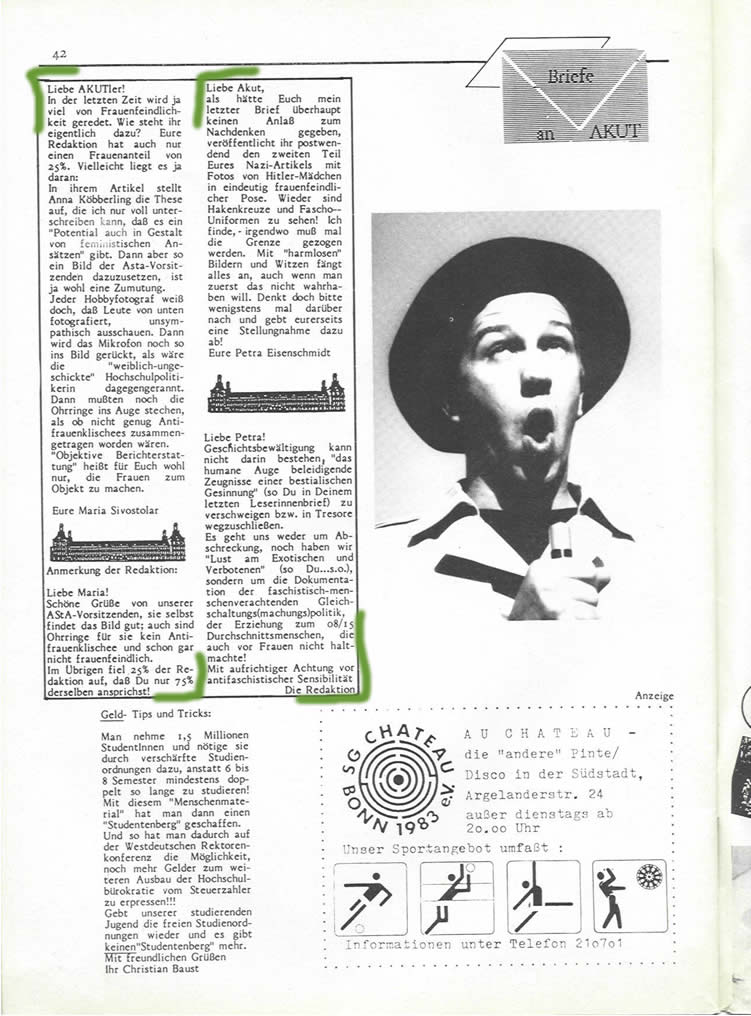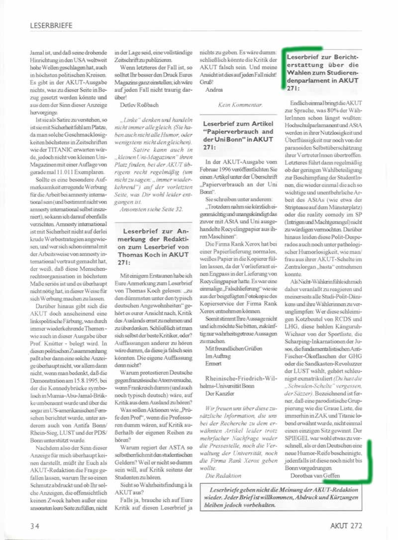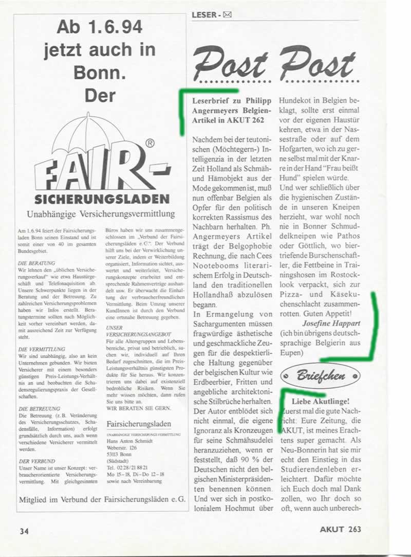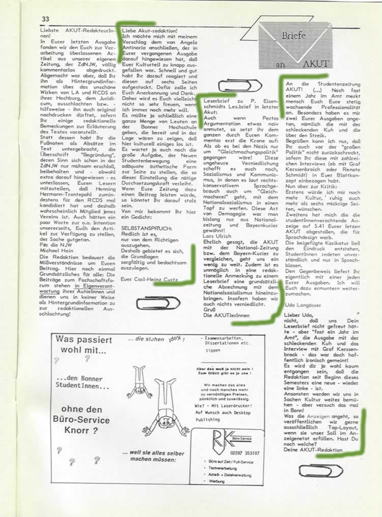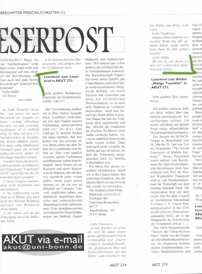 folgenden Ausgabe der Akut erscheint daraufhin eine Gegendarstellung