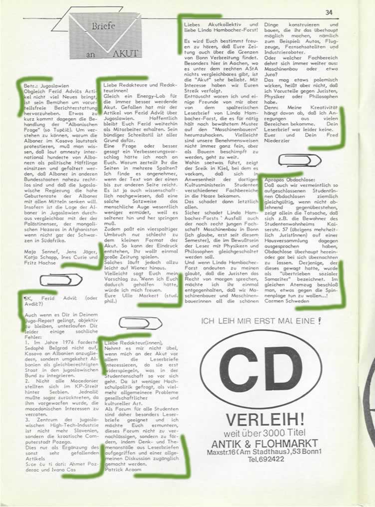 Fred, Maschinenbauer aus Aachen, bezieht sich auf den Brief